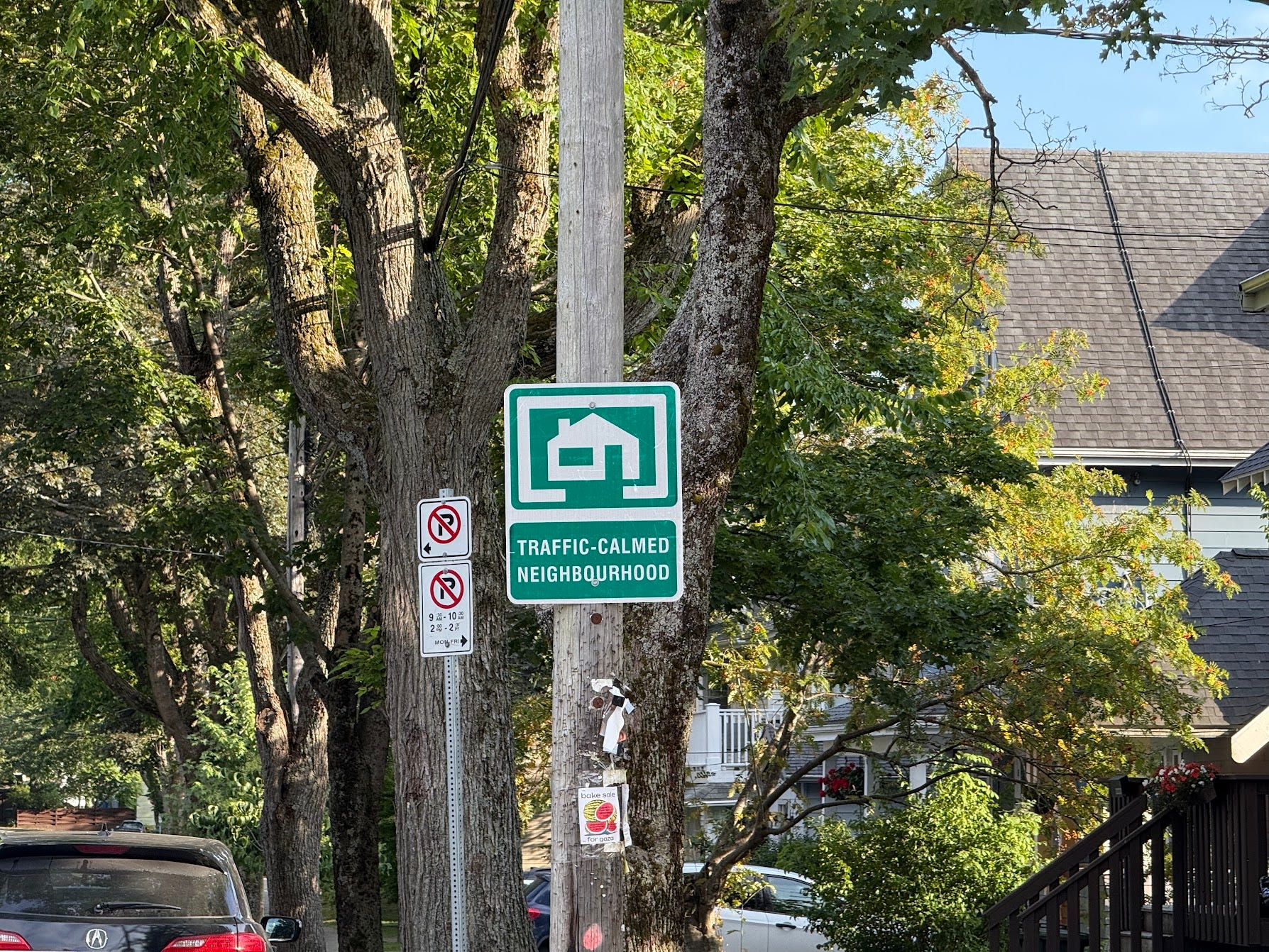 I saw a sign that specifically denoted this neighborhood was designed to be traffic-calmed, one of my most frequently used buzzwords.